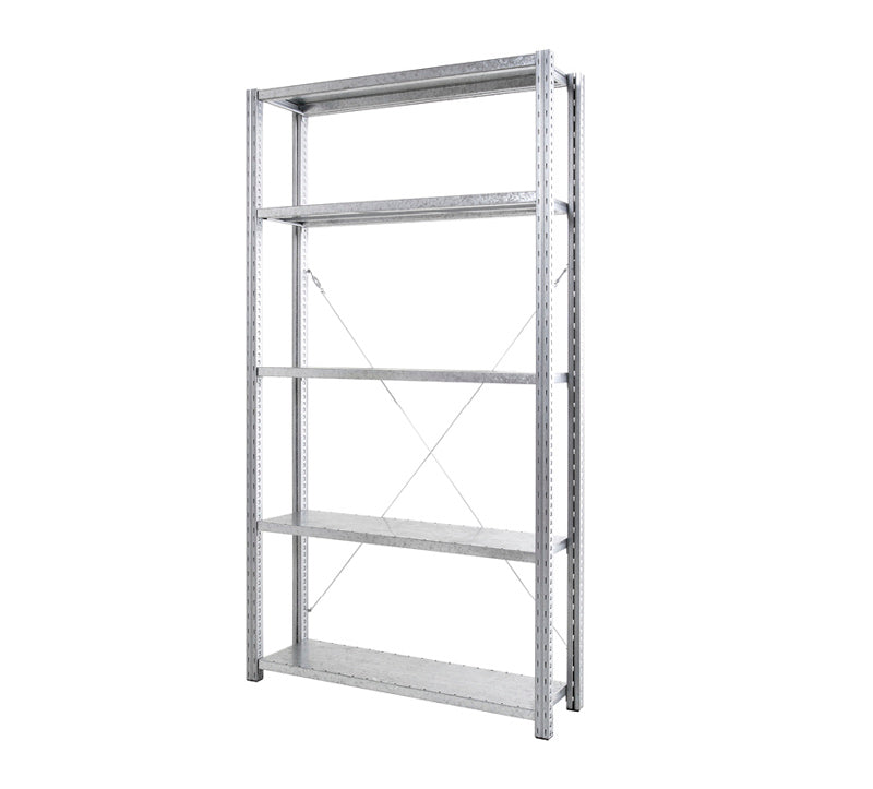 5 stålhylder 1250 x 700 mm, bæreevne 150 kg pr. hylde.