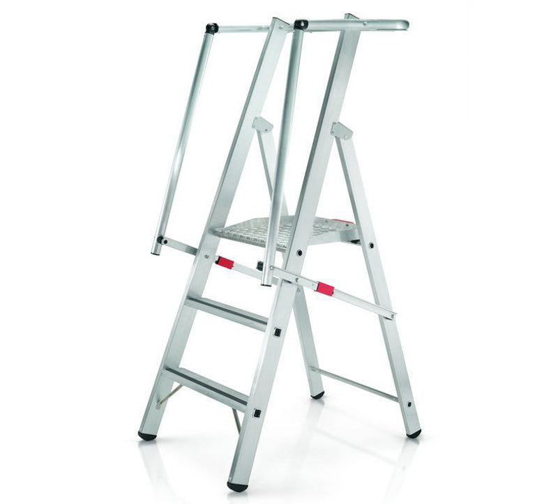 "Two Hands Free"-filosofien betyder konkret, at det 3-sidede gelænder hele vejen rundt og håndlisten sikrer dig fuld fokus på arbejdsopgaven uden at holde fast eller bekymre dig om balancen. ZARGES Safer Step Technology med 80 mm dybe, skridsikre trin reducerer reelt risikoen for faldulykker. Det automatisk klapbare gelænder sikrer, at du ikke kan glemme sikkerheden, og stigen lever op til DIN EN ISO 14122, EN 131-serien og Arbejdstilsynets krav.
