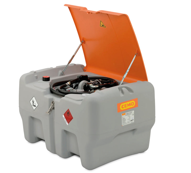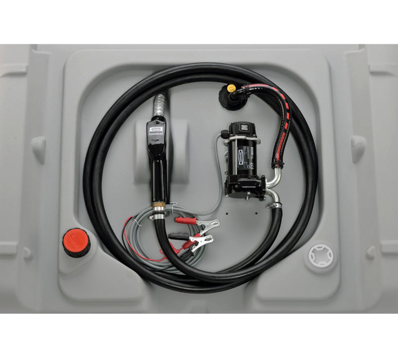 DT-Mobil diesel tankanlæg med elektropumpe 12V og tankpistol og låg.