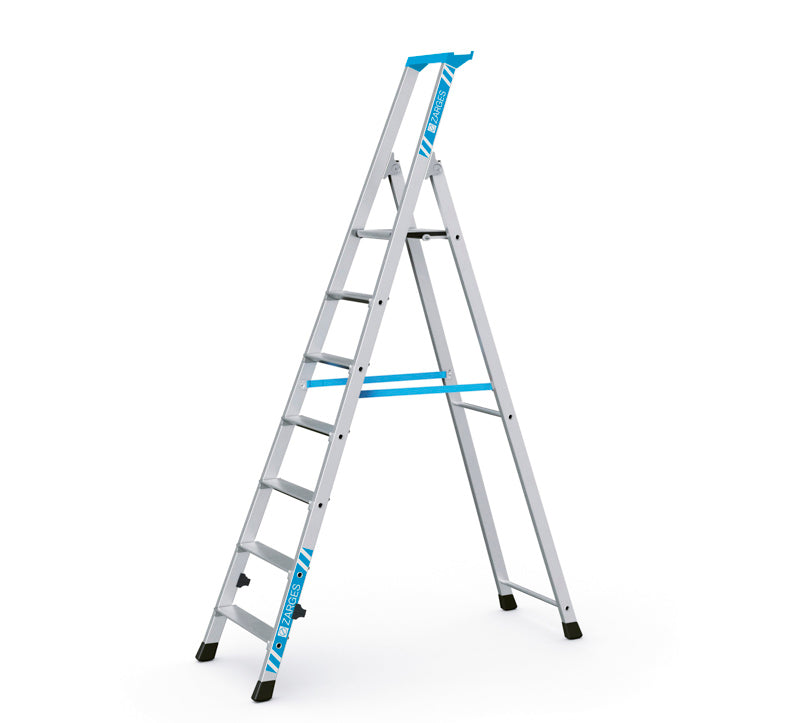 Zarges håndværkerstigen kombinerer tysk ingeniørkunst med praktiske detaljer, der gør arbejdsdagen lettere for professionelle håndværkere, serviceteknikere og vedligeholdelsesfolk. Med kun 9,1 kg vægt transporteres den let mellem arbejdssteder, mens den integrerede værktøjsbakke i toppen af vangeren holder værktøj organiseret og inden for rækkevidde. Stigen er godkendt efter EN 131 Professional-standarden og leverer den stabilitet og sikkerhed, som professionelt arbejde kræver.