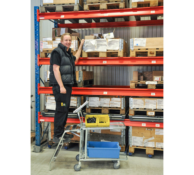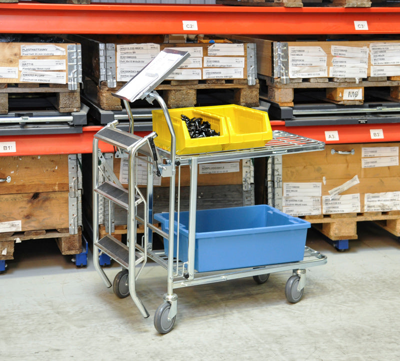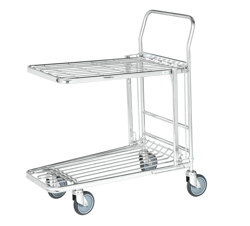 Stabelbar vogn, hvor den øverste hylde kan foldes op.