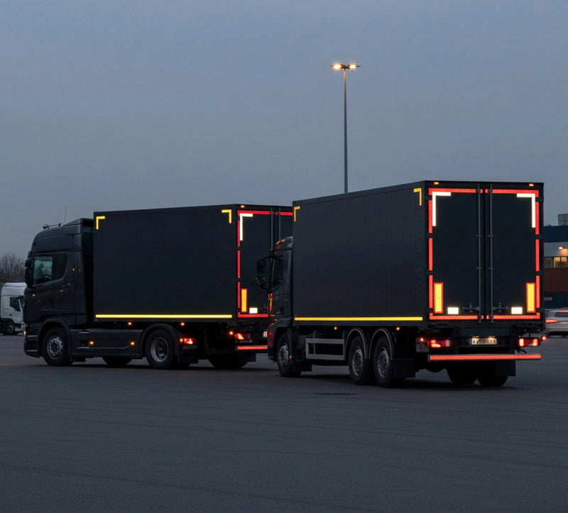 Konturafmærkning til lastbiler er lovpligtigt for alle køretøjer bredere end 2100 mm og kan redde liv gennem betydeligt forbedret synlighed. Med denne 55 mm brede reflekterende folie på 50 meter får transportvirksomheder, værksteder og offentlige institutioner en certificeret løsning, der gør tunge køretøjer synlige op til 1000 meter om natten og opdages 8-9 sekunder tidligere på motorvejen.