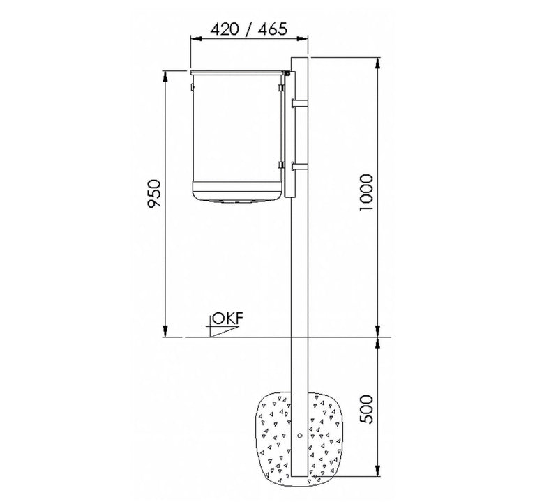 Med kompakte dimensioner på 380x510x380 mm passer beholderen perfekt til steder med begrænset plads som indgange til kontorbyggerier og fællesarealer i boligbebyggelser. Den fleksible monteringsmulighed på enten væg eller søjle gør den pladsbesparende og velegnet til tætte bymiljøer. Den medfølgende nøgle sikrer kontrolleret tømning og forebygger hærværk - særligt relevant for erhvervsbyggerier og boligforeninger der ønsker sikker affaldshåndtering.