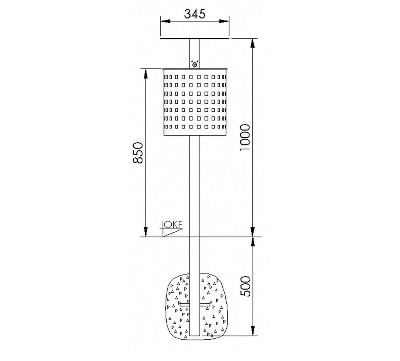 Inkl. søjle til nedstøbning. Inkl. nøgle for tømning.