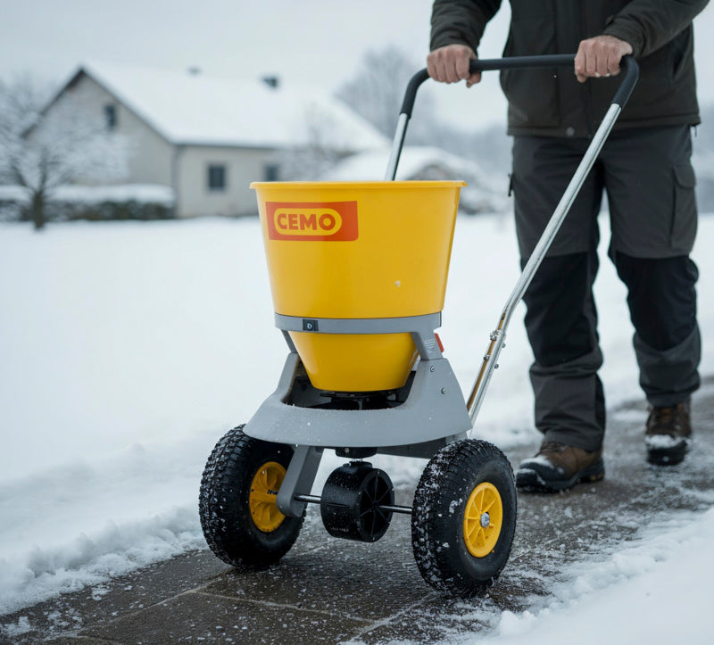 CEMO saltspreder 20L i kompositramme og med PE beholder.